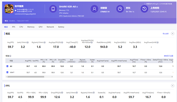 针对于这种FPS游戏《和平精英》对帧率的体验更为敏感,在游戏的测试体验中,黑鲨4 Pro能开启HDR高清的情况下开启超高帧率模式,并把平均帧率稳定在59.7帧,最高帧率60FPS,游戏性能表现也能取得不错的成绩。