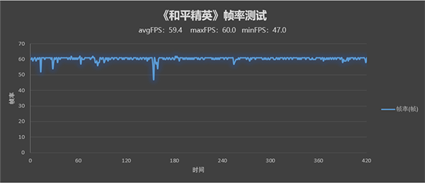 《和平精英》流畅画质+极限帧率下,平均帧率可达59.4 FPS。
