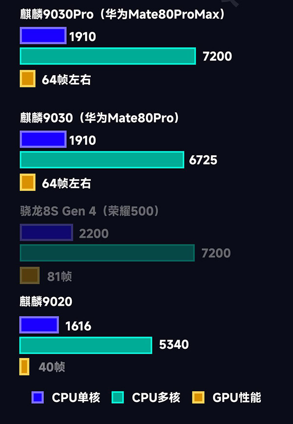 这次的麒麟9030 Pro和麒麟9030最大的差别就是少了一颗2.27Ghz中核心,所以后者的CPU多核性能相比前者会有一定的减少。