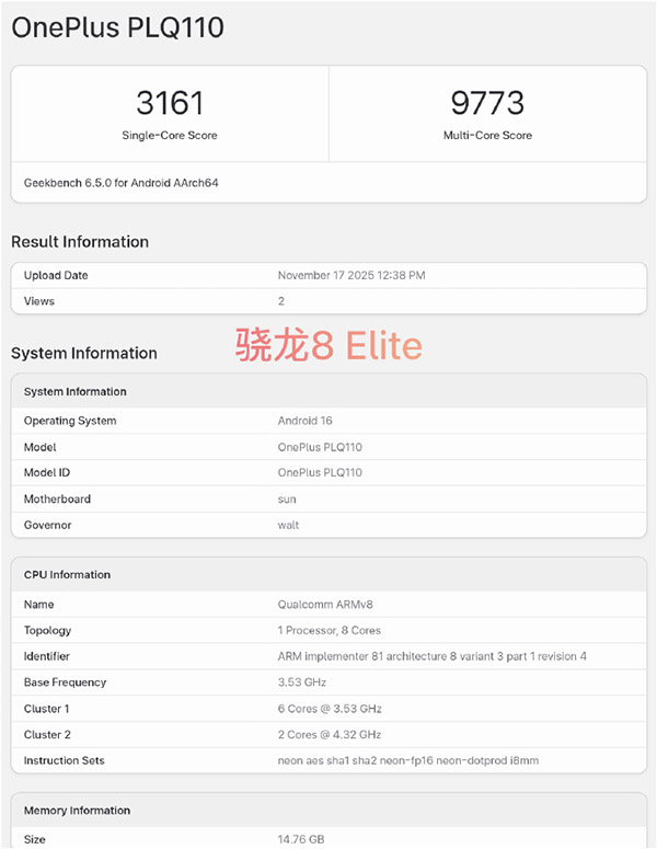 GPU方面,识别为Adreno840,与骁龙8Elite的GPU架构保持一致,这意味着两者在图形性能上也极为接近。