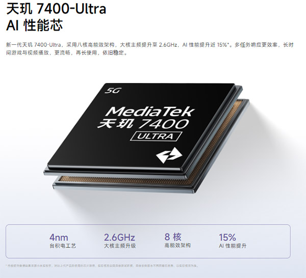 现在的中端机型用的处理器还是挺多的,只要不是以性能体验为主的,处理器的规格上都不是很高的,比如之前红米Note15 Pro就搭载了一款天玑7400 Ultra芯片处理器,很多人想知道这个处理器是什么水平,下面带大家来了解一下。