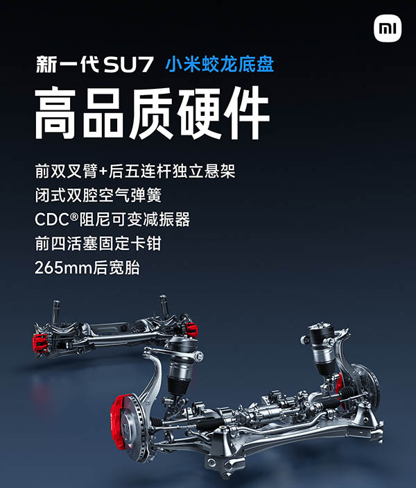 新一代的小米SU7也是发布在即,不过关于这个新车的相关配置也是越来越清晰,并且该车还首发搭载小米蛟龙底盘:“这是专为驾驶者打造的高性能智能底盘系统,一定能让大家感受到极为出色的驾驶质感。