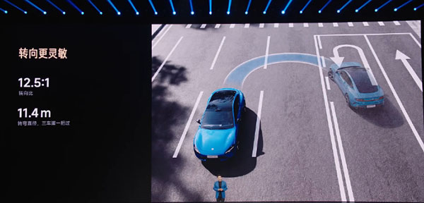 五是:转向机的优化,整体手感更细腻,转向比没变,依旧是12.4,主流品牌比小米的转向比还小的,也就特斯拉了。
