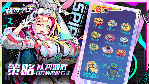 环,轴,盖共计180多种部件任你组合搭配,自由组装专属于你的攻击型、防御型、平衡型或持久型陀螺。 从组装到配队,凭借智慧赢取胜利!
