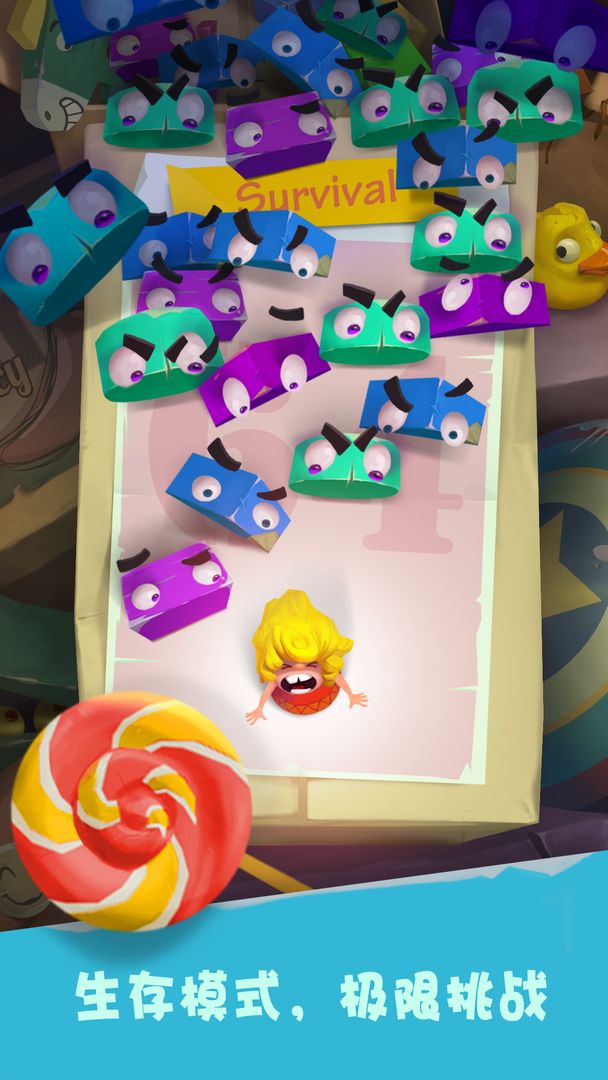- 各种搞笑的小怪兽等您挑战,如 恐龙怪,坦克怪和五颜六色的方块怪