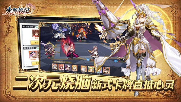 顶级画师联手打造的泛二次元6V6卡牌RPG手游,《火源战纪》火爆来袭,7大养成系统,强大日语配音,精美立绘,酷炫合击大招,带你感受阿瓦隆大陆的绝美风貌。4大阵营,绝美SSSR神将,多种策略组合,丰富多样的养成体验荟萃集结!跨服竞技PK、怪盗来袭、航海奇遇、公会战、试炼之塔......玩法多样,探索乐趣无极限! 聊天、吐槽、抢红包、实时语音,社交无所不能!一人刷副本,众人陪互动。撩妹分分钟,战斗再也不枯燥!
