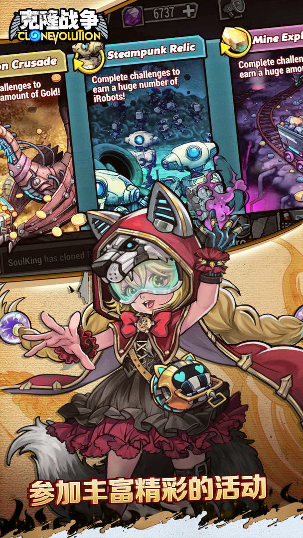 精心选择您的克隆军团,搭配不同的技能和站位,挑战F-Tec在世界各地布置的重重防守!更可以与全球玩家同场竞技,决出最强王者!