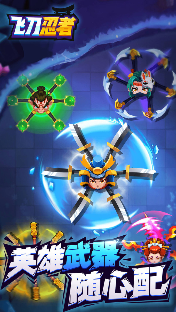 --忍者、花魁、将军、横岗等等英雄供你选择; 花刃、飞扇、钩镰、手里剑等数十种武器随心搭配;