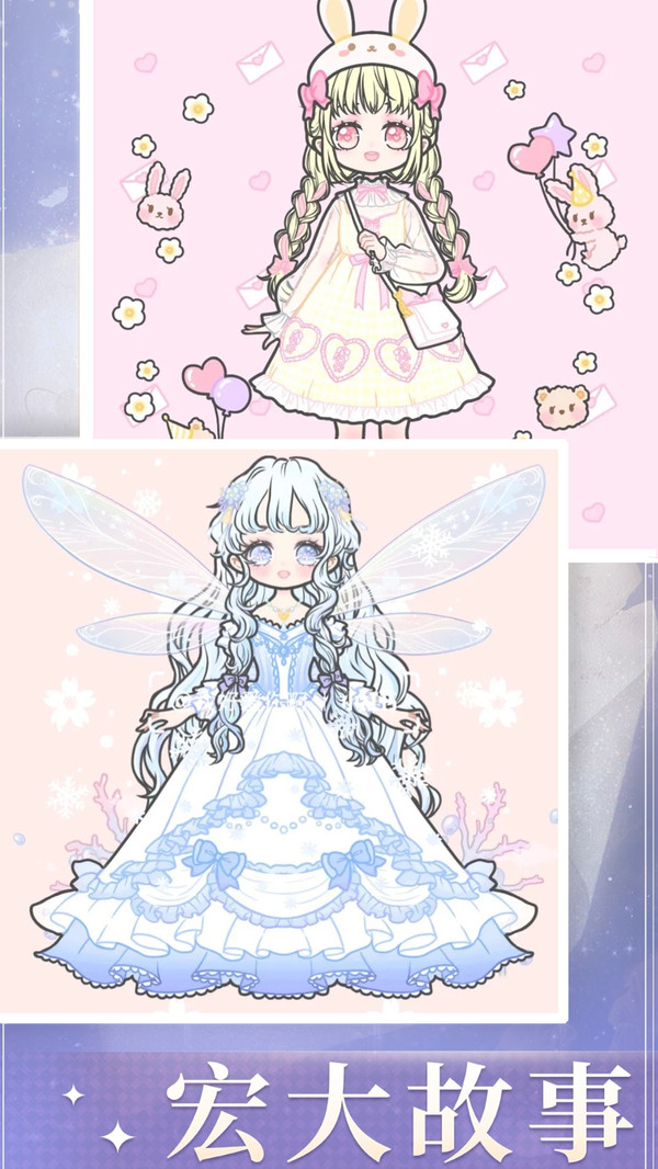创作你自己的故事 创建自己的角色、装扮她并播放动画场景会是什么感觉? 使用各种框架和语音气泡贴纸创建您自己的故事并找出答案! 现在开始创建自己的美装故事吧!