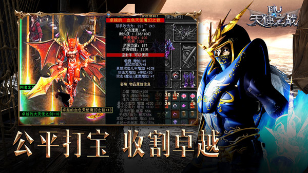 《天使之战》是一款多人在线角色扮演手游,游戏整体画面高度复刻经典,三大职业剑士、法师、弓手燃情回归,多样加点及培养塑造三职业不同的成长。所有地图场景高度还原,全地图野外自由探索,打宝BOSS获得稀有装备。 血色城堡、恶魔广场、狼魂要塞等经典玩法悉数登场,更有单人PK、组队团战、战盟攻城战、跨服竞技等多样PVP玩法,经典红名重现勇者大陆,燃情激战再续亚特天空 整个游戏包含角色、装备、翅膀、宠物、精灵、坐骑等多维度养成,精致的装备流光闪耀仙踪,酷炫的坐骑带你探索冰风。 在社交上,以好友、战队、战盟为基础,倾力打造更加热血,更加真实的游戏社交环境 全民唤醒,天使降临!