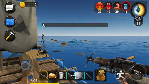 你将出生在一艘木筏上,海上会飘来许多物品,合理使用可以制造出各种生活工具。在冒险的同时也要注意角色的各项属性,健康值、血量、饥饿值、饥渴值,任何一项缺少都会导致游戏失败! 除了制造生活物品以外,只要你拥有足够的材料,就可以在海上建造房屋,甚至可以建造多层,放置椅子、桌子等家具,装扮你的海上别墅吧! 惊险刺激的冒险之旅已经开始,看看你能存活多久!漂流生存冒险是一款生存冒险类游戏,玩家可以真实模拟鲁滨逊式的海上求生体验,但这款游戏模拟在海上求生,你不仅可以在海上捡拾各种道具来帮助你生存,还可以打造各种各样的房子,甚至是海上别墅,最重要的是你可以与朋友联机,与其他玩家对抗。