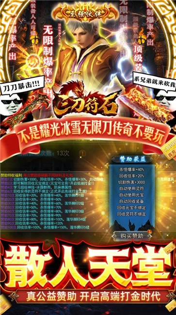 三刀符石耀光冰雪无限刀是一款拥有着超高爆率让你享受极致传奇游戏体验的热血传奇游戏,在这款三刀符石耀光冰雪无限刀游戏中有着不同的玩法,高额的副本奖励,无论是玩家还是商人,都可进行搬砖倒卖装备、道具,装备置换轻松简单,交易过程自由无碍,让你每一件武器都能做到恰到好处!三刀符石耀光冰雪无限刀让玩家刀刀暴击畅爽砍怪,超高爆率让你享受最为热血的冒险之旅,游戏职业凭心选择,不同的职责,不同的属性,不同的玩法,世界BOSS定时随机刷出,除了要有欧皇般的运气遇到,配合默契的团队显得更为重要。