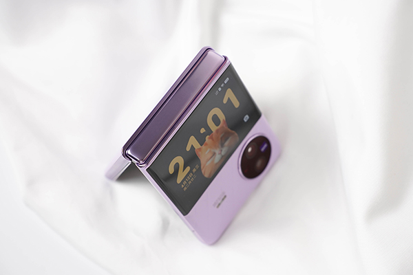 vivo X Flip采用航天级材料制成的铰链,具有出色的耐用性和稳定性。在多层立体支撑结构的支撑下,折叠后的机身看起来非常整洁,折痕也几乎无法察觉。这款手机甚至获得了菜茵50万次折叠无忧认证,足以证明它的高品质和耐用性。总之,vivo X Flip的外观设计非常引人注目,不仅具有美观性,更重要的是它的实用性和耐用性也非常出色。