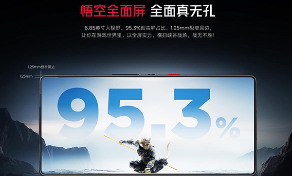 红魔10S Pro/Pro+采用6.85英寸1.25mm极窄黑边无孔全面屏,1.5K分辨率2000nit峰值亮度,144Hz自适应高刷,支持2592Hz超高频PWM调光、DC调光,多重护眼。搭载节奏大师测试的MAGIC TOUCH2.0触控技术,1600W像素的前置屏下摄像头。