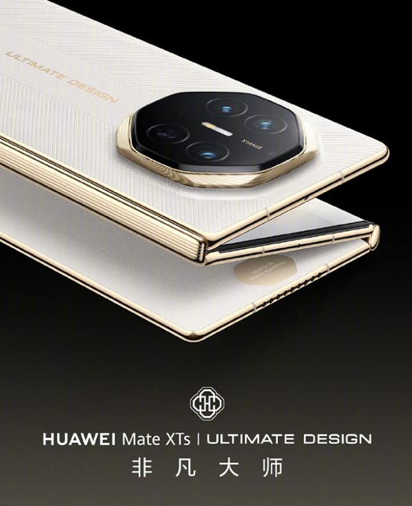 设计层面,华为给Mate XTs非凡大师注入了全新的非凡美学表达,机身镜头模组装饰、中框与徽标配色升级为沙金色,搭配全新匠心压纹工艺,更加凸显非凡大师的尊贵质感。