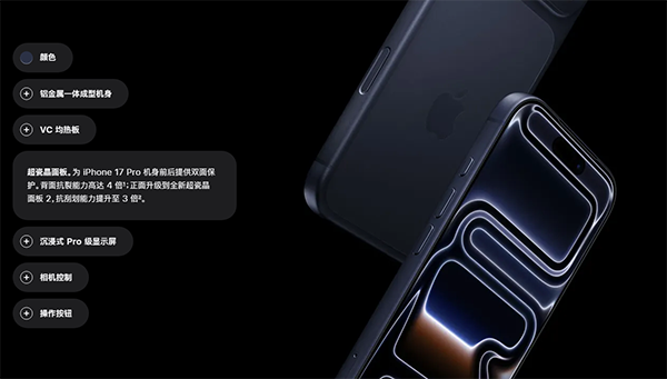 超瓷晶玻璃,苹果iPhone 17 Pro正面升级到全新超瓷晶面板2,抗刮划能力提升至3倍。