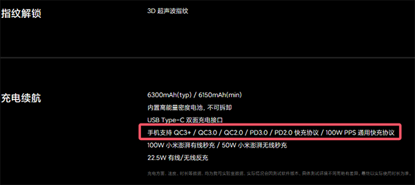 并且在快充协议方面,小米17 Pro支持和兼容QC3+/QC3.0/QC2.0/PD3.0/PD2.0快充协议/100W PPS通用快充协议。