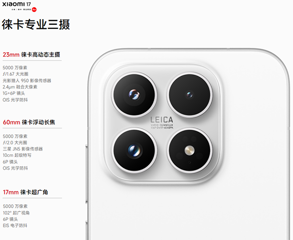 影像方面,这个小米17依旧和徕卡深度合作,带来大光圈三摄,能够实现全焦段的5000万像素表现,配合上Summilux大光圈镜头,和光影猎人950传感器,在进光量和成像表现上,更加优秀。