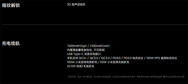 在充电方面,该机支持100W有线澎湃秒充(兼容100W PPS通用协议),其他品牌的快充头也能给小米实现满血快充,此外还支持50W无线秒充+20W无线反充。