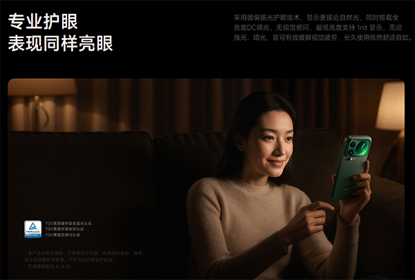 支持,在护眼方面,小米17 Pro Max默认的是全亮度类DC调光,并且可切换2160Hz频率的高频PWM调光,搭配圆偏振技术,戴墨镜也能清晰看屏,深夜使用不刺眼。
