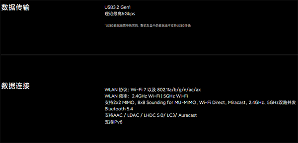 蓝牙5.4,并且支持AAC/LDAC/LHDC5.0/LC3/Auracast。