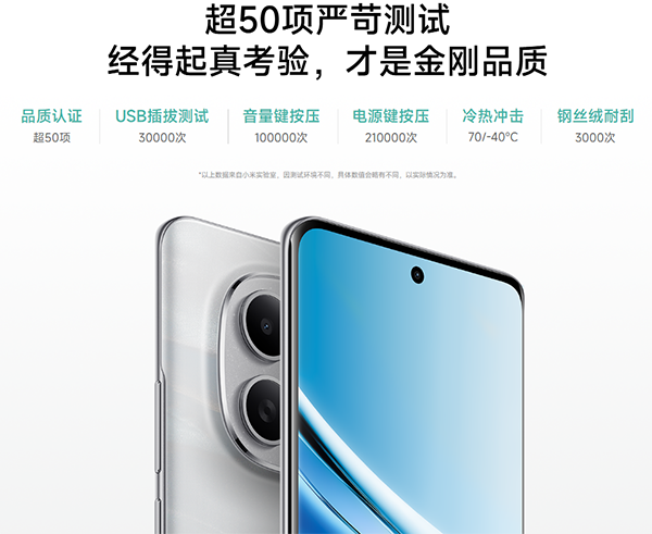 后置5000万像素主摄(光影猎人400传感器,1/2.88英寸,f/1.8光圈,4in1 1.22μm 融合像素,5P镜头,中置马达)