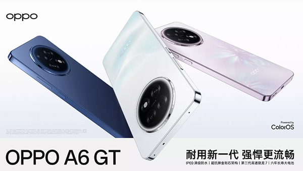 OPPO A6 GT采用流线型直角中框+3D曲面后盖设计,厚度仅7.7mm,重量198g,在千元机中堪称“轻薄担当”。流光白纯净简约、岩雾蓝低调沉稳、荧彩粉活力清新,覆盖不同审美需求。