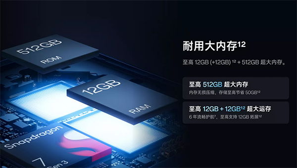 在这个性能上,这款OPPO A6 GT搭载的是第三代高通骁龙7芯片,4nm工艺,8个核心,1个超大核、3个大核、4个小核,最高主频2.6GHz,GPU频率975MHz。