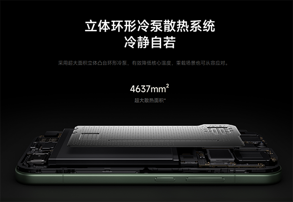 立体环形冷泵散热系统,小米17 Pro配置的是4637mm²超大散热面积的立体凸台环形冷泵,有效降低核心温度,重载场景也可从容应对。