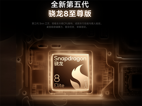 第五代骁龙8至尊版采用台积电第三代3nm工艺,2+6核心架构(双4.6GHz超大核+六3.62GHz性能核),性能、能效全面飞跃。