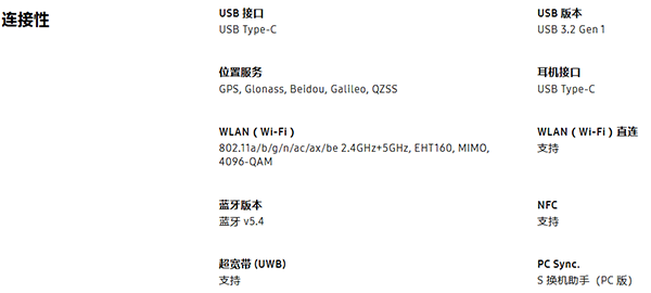 USB3.2 Gen1,三星W26配置的是USB3.2 Gen1接口规格。