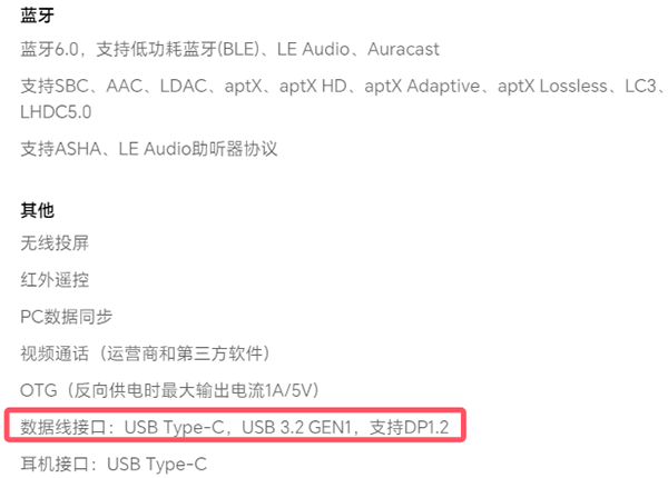 另外,荣耀Magic8 Pro配置的是USB3.2 Gen1接口,并且支持DP1.2。