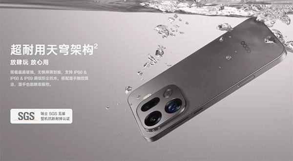 另外,OPPO Find X9 Pro支持的是IP66+IP68+IP69级别的防尘防水,也是满级防水配置了。