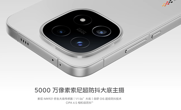 主摄镜头:5000万像素,索尼IMX921传感器(即LYT702),1μm,1/1.56英寸,F1.88光圈,OIS光学防抖,等效焦距23mm;