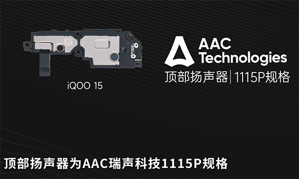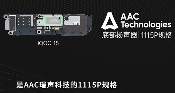 是,iQOO 15配置的是双扬声器️,并且顶部和底部都是瑞声科技的1511P规格的扬声器。