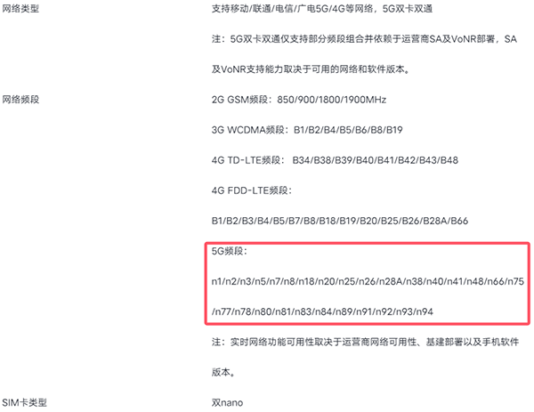 5G频段:n1/n2/n3/n5/n7/n8/n18/n20/n25/n26/n28A/n38/n40/n41/n48/n66/n75/n77/n78/n80/n81/n83/n84/n89/n91/n92/n93/n94。