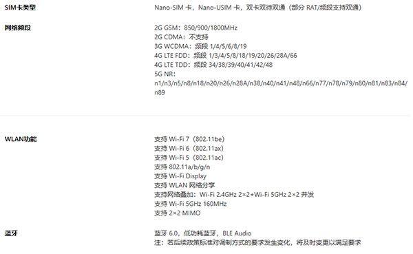 5G频段:n1/n3/n5/n8/n18/n20/n26/n28A/n38/n40/n41/n48/n66/n77/n78/n79/n80/n81/n83/n84/n89。