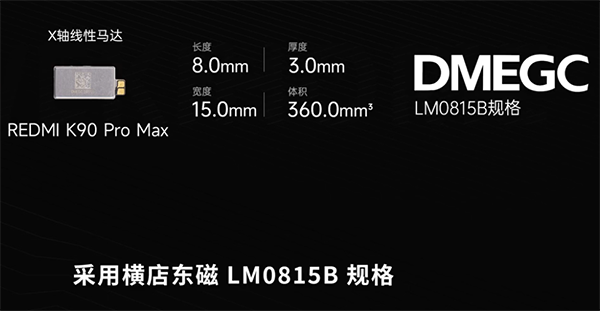 横店东磁LM0815B X轴线性马达,红米K90 Pro Max配置的是横店东磁LM0815B X轴线性马达。