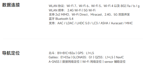 在导航方面,红米K90 Pro Max配置的是三频北斗:B1I+B1C+B2a|双频GPS:L1+L5|Galileo:E1+E5a|GLONASS:G1|QZSS:L1+L5|NavIC|A-GNSS|数据网络定位|Wi-Fi网络定位|sensor辅助定位。