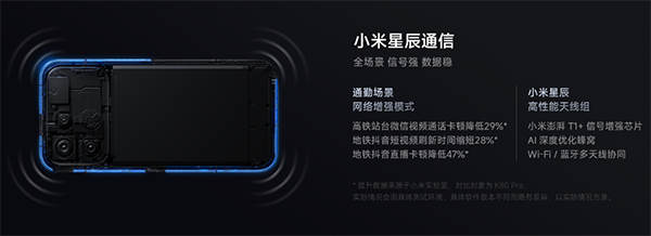 另外,红米K90是支持小米星辰通信的,并且支持全场景信号强数据稳,并且还内置有小米澎湃T1+信号增强芯片,让网络连接稳定性与速度再上台阶,无论是游戏开黑还是高速下载,体验都无懈可击。