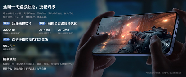 300Hz触控采样率(普通场景130Hz,部分游戏场景300Hz),3200Hz瞬时触控采样率。