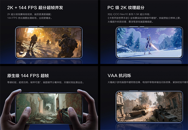 是,iQOO Neo11除了搭载骁龙8至尊版处理器,并且还搭载有iQOO自研电竞芯片Q2,有AIGC的超分,可2K+144fps并发。