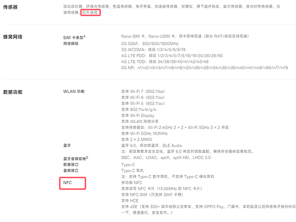 OPPO Find X9有支持NFC和红外遥控功能吗