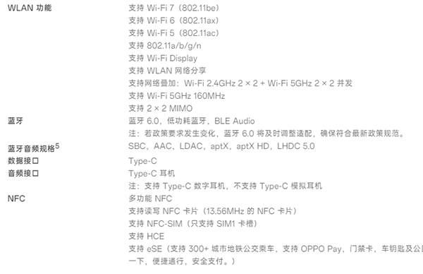 支持,OPPO Find X9支持Wi-Fi7(802.11be)、Wi-Fi 6(802.11ax)、Wi-Fi 5(802.11ac)、802.11a/b/g/n。