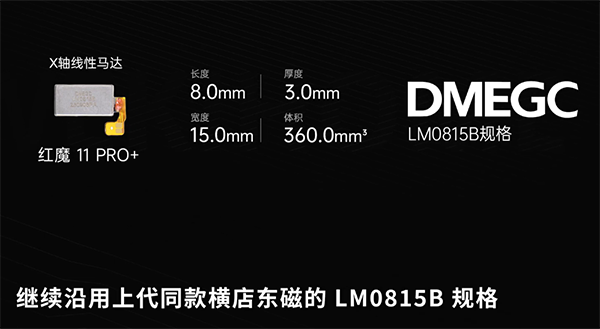LM0815B X轴线性马达,红魔11 Pro/Pro+继续沿用上代同款横店东磁的LM0815B规格。