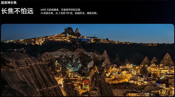 长焦:6400万像素潜望长焦,F2.5光圈,3倍光学变焦,OIS光学防抖
