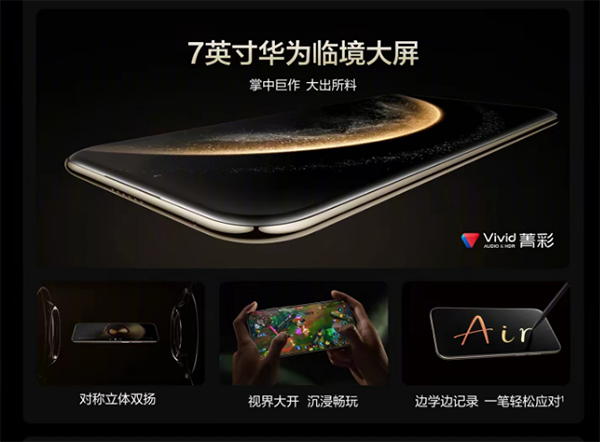屏幕,是华为Mate70 Air最让人印象深刻的部分。它配备了一块7英寸的华为临境大屏,采用18.8:9的黄金比例设计,屏占比高达94.1%。