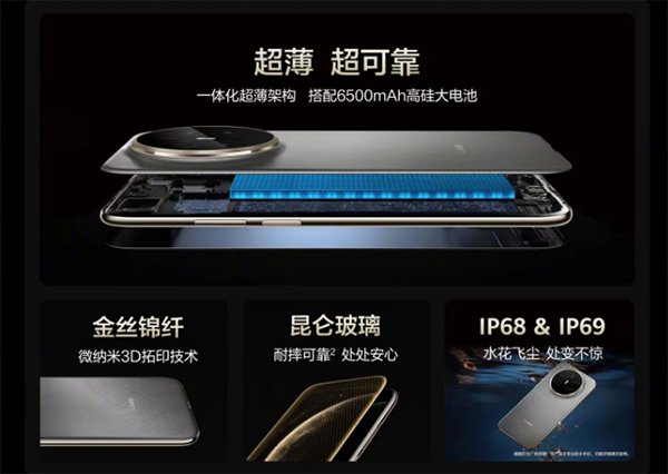 华为Mate70 Air延续了Mate系列的高端调性,同时在“轻薄化”上做了重点突破,该机采用6.9英寸左右的等深四曲屏设计,居中单孔形态保证了全面屏的视觉完整性,且搭载昆仑玻璃,兼顾耐摔性与显示效果。
