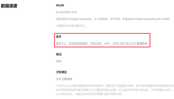 蓝牙5.2,支持低功耗蓝牙,支持SBC、AAC,支持LDAC和L2HC高清音频。