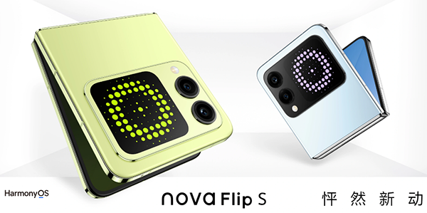 在外观设计上,nova Flip S与前代nova Flip保持一致,采用1:1方形外屏设计,尺寸为2.14英寸,分辨率达480x480像素。